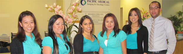 We Are Here For You! The Pacific Medical Imaging and Oncology Center's team of caring staff and well-trained technologists pool their expertise to offer patients diagnostic imaging options and unmatched clinical expertise which optimize the quality of your diagnostic examination. Experienced, board certified radiologists will carefully review your examination study and promptly convey the results back to your doctor. Your personal physician can also access your study results and pictures via our secured website. In an effort to better serve you, we utilize some of the industries most sophisticated and advanced medical equipment, including one of the very few combination PET/CT scanners in the area. PET/CT is a powerful diagnostic tool for detecting and staging cancer with far greater accuracy than ever before. It is the ultimate tool for targeting metabolically active cancer for treatment. PET is also very useful in brain and cardiac imaging. At PMIOC, we are committed to providing you, your physician and the community the best possible medical technology and service in the industry. Diagnostic Imaging Services We Provide: